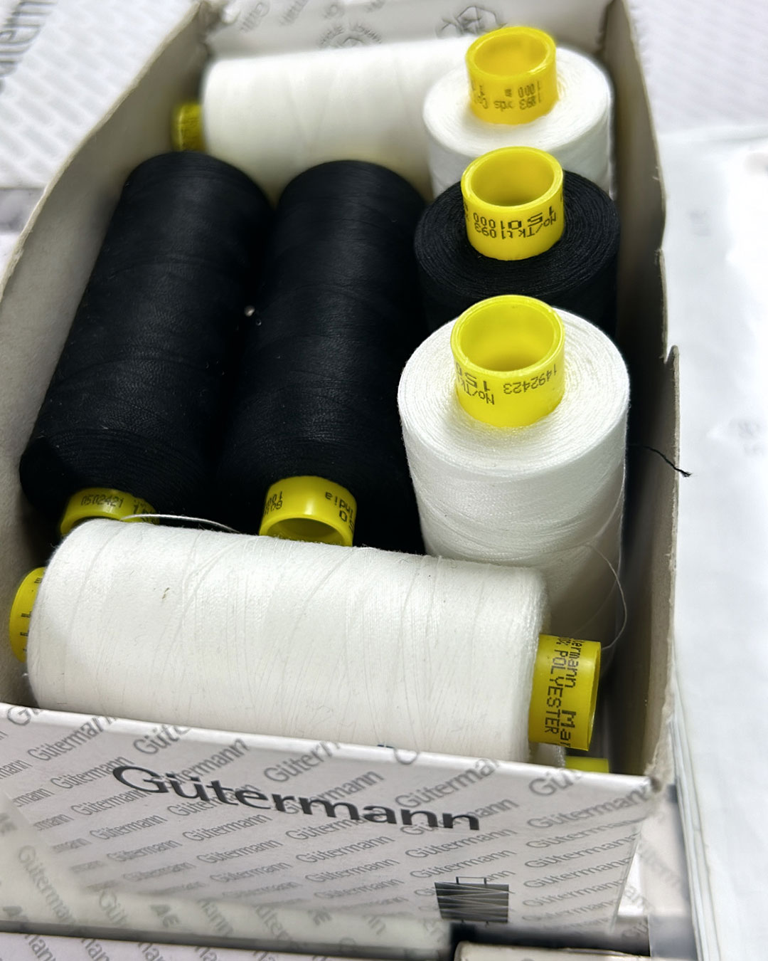 이런 견고한 봉제하는 방법에는 필자가 사용하는 구터만(Guretmann)같은 독일의 견고한 기술력을 가진 실은 사용하지 않아도 된다. 흔히 ”SPUN POLYESTER“라 쓰여진 저렴하고 일반적인 재봉실을 사용해도 봉제에는 큰 문제는 없다고 생각한다. (저렴한 봉제사는 광택감이 떨어지나 이것은 위와 같은 봉재 방식에는 별개라는 생각)