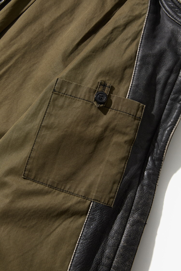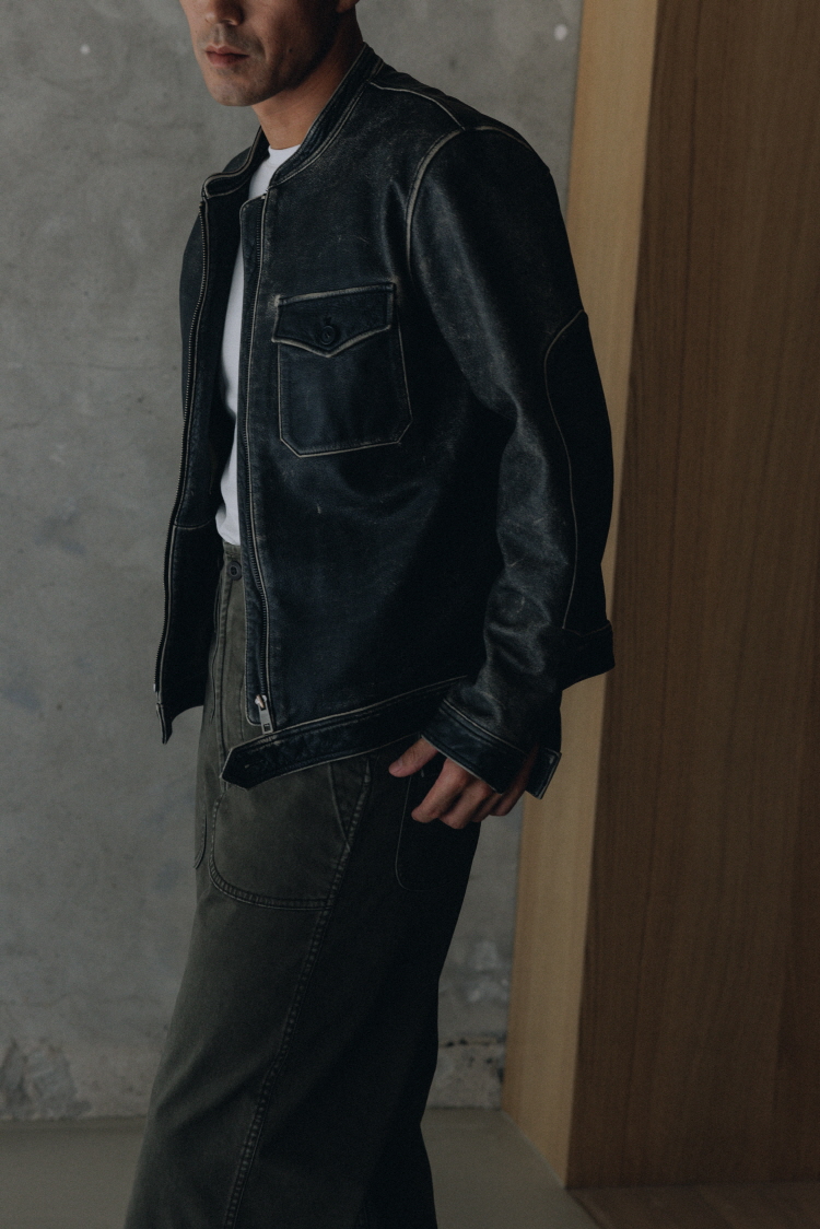 레이어드가 편리한 소프트한 워시드 레더 자켓입니다. 다양한 헤비 아우터 안에 착용할 수 있도록 디자인했으며, 부드러운 촉감 구현에 집중한 제품입니다. 안감에는 특수 코팅된 코튼을 사용해 빈티지한 매력을 한층 더했습니다. 1960년대 베트남전 당시 벤츠 G바겐을 수리하던 프랑스군 메카닉 자켓을 현대적으로 재해석한 아이템입니다.