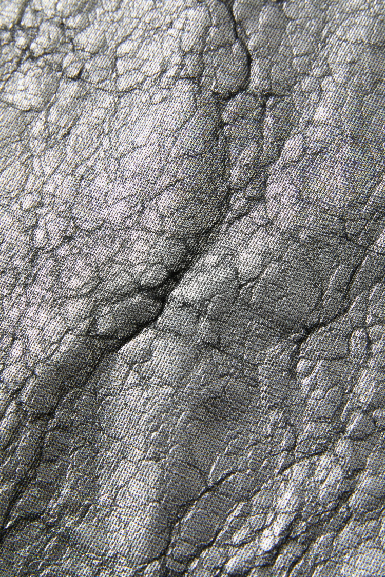 체내 열 배출을 차단하고 방풍 효과를 지닌 경량 알루미늄 소재 원단입니다. 내구성이 뛰어나며, 일정 수준의 발수 및 방수 기능을 갖추고 있습니다. 독특한 조직감이 특징인 소재입니다.