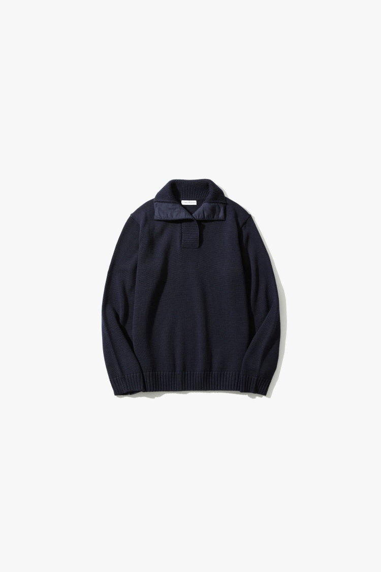 숄더넥을 변형한 디자인으로, 넥 라인을 두 겹으로 겹쳐 연출하여 높은 보온성을 제공합니다. 헤비 게이지 구조이지만, 일반적으로 파인 게이지 니트에 사용되는 고급 태번수 울 100%를 고밀도로 짜 올려 약 1kg에 가까운 묵직한 무게감을 구현했습니다. 또한, 워셔블 기능을 갖추어 손쉬운 관리가 가능합니다. 이 제품은 1960년대 산악병(Mountain Troop) 니트웨어를 현대적으로 재해석한 디자인입니다.