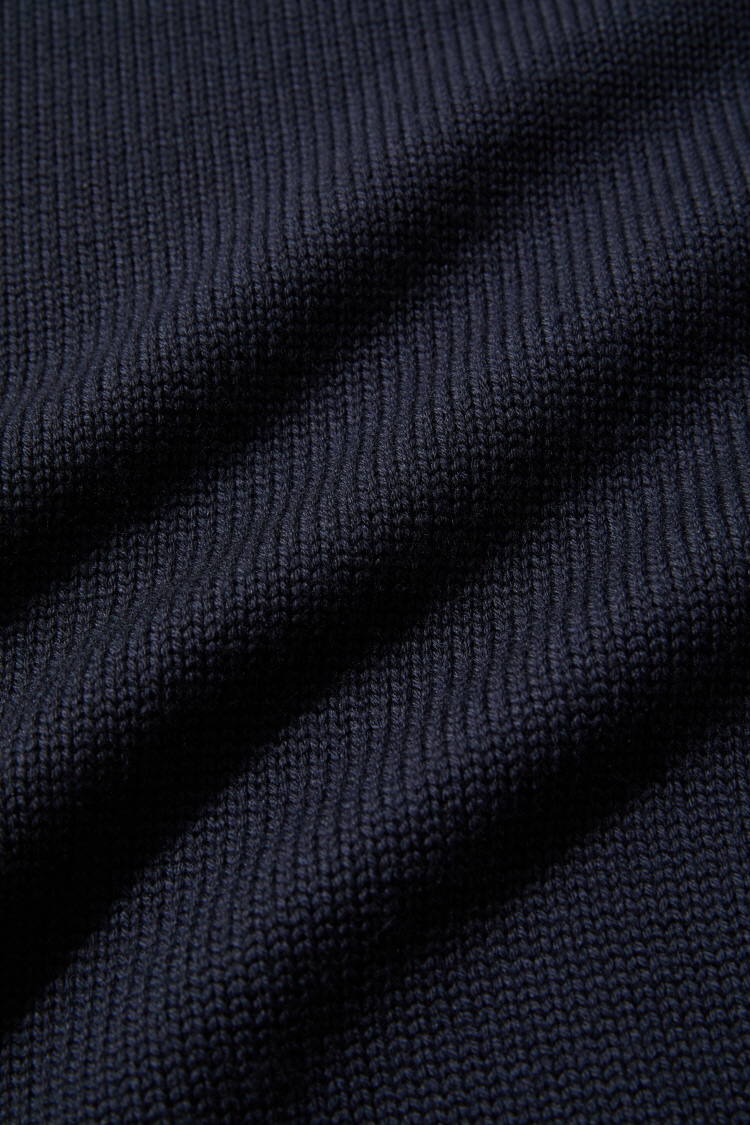 워셔블 타입으로 제작된 최상급 천연 울 100% 원사입니다. 17.5μm(마이크론) 이상의 고품질 울을 사용해, 실 단계에서부터 워셔블 가공을 적용하여 세탁 후에도 쉽게 변형되지 않는 안정적인 형태를 구현했습니다. 편직은 일반적인 헤비 게이지가 아닌 파인 게이지용 원사를 사용해 진행하였으며, 그 결과 높은 밀도감과 우수한 텐션을 지닌 니트 조직으로 완성되었습니다.
