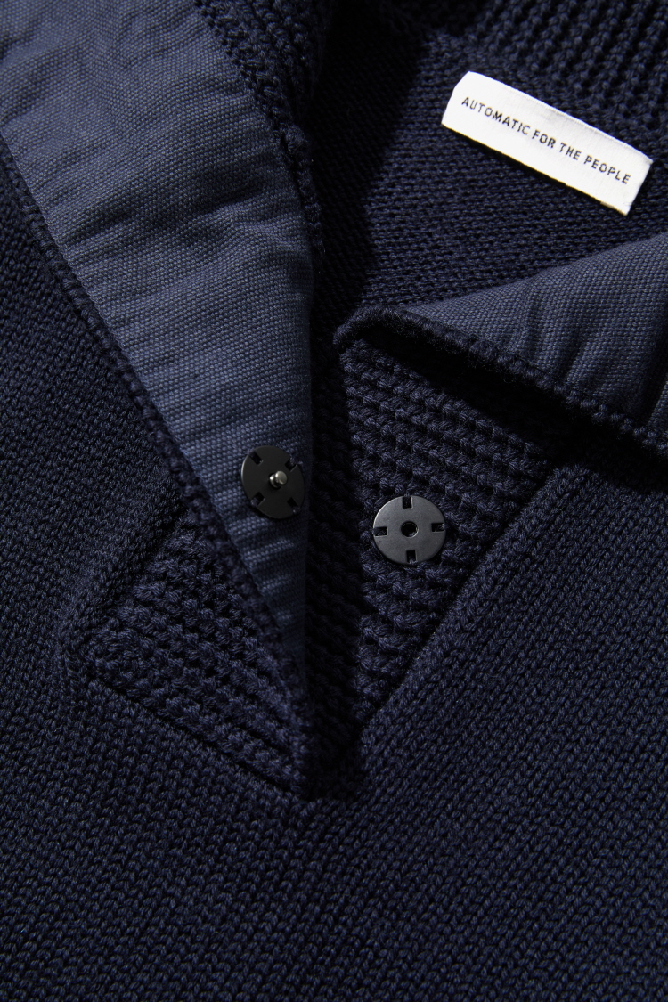 오토매틱 포 더 피플 숄 넥카라 니트웨어 네이비