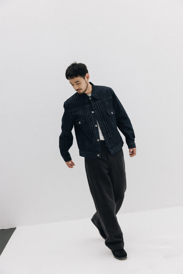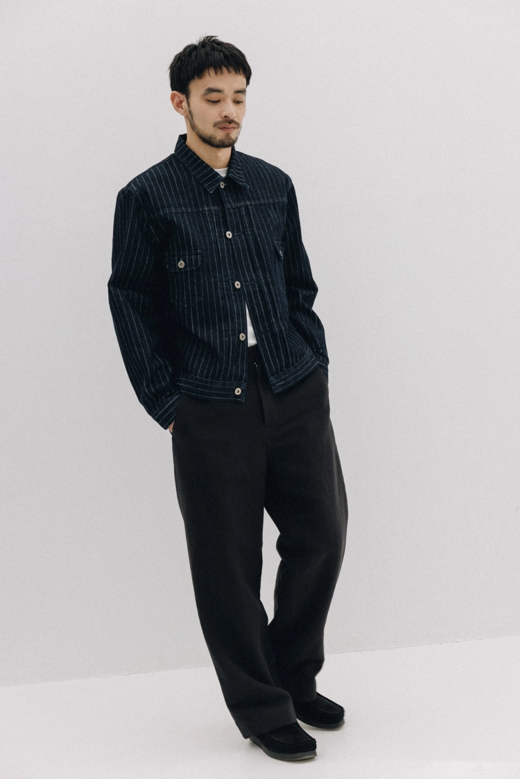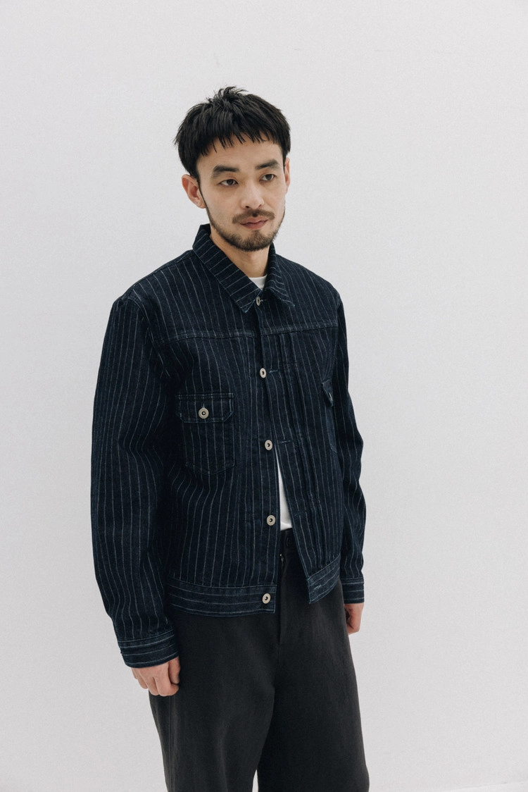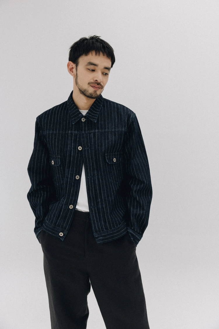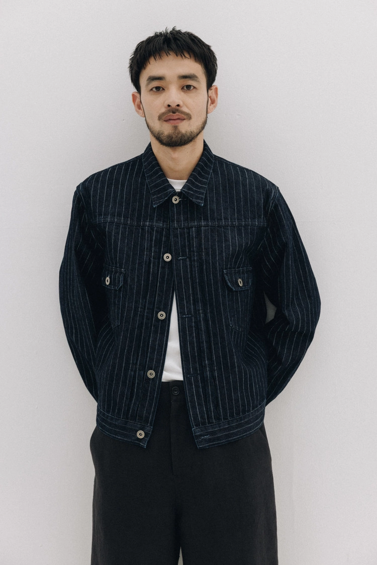 실용적인 작업복을 기반으로 한 데님 Type-2 자켓을 스트라이프 데님으로 제작했습니다. 위사와 경사, 스트라이프 원사를 각각 다르게 직조해 볼륨감 있는 텍스처를 살렸으며, 워싱 후 자연건조를 통해 구겨진 듯한 자연스러운 질감을 완성했습니다. 1950년대 Levi’s 507XX 자켓에서 영감을 받아 현대적으로 재해석한 제품입니다.