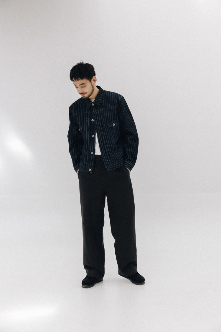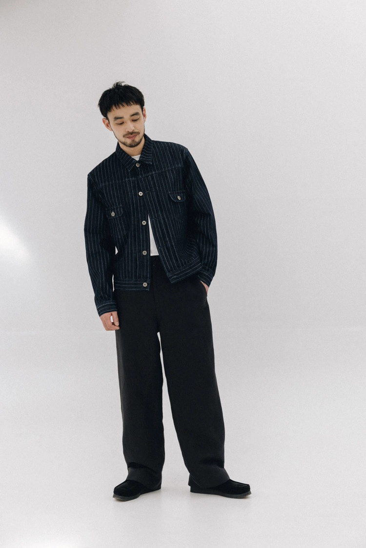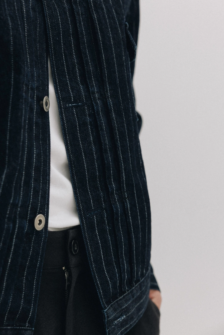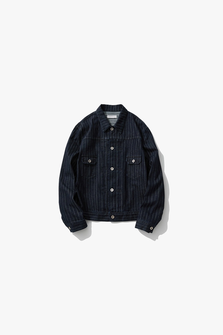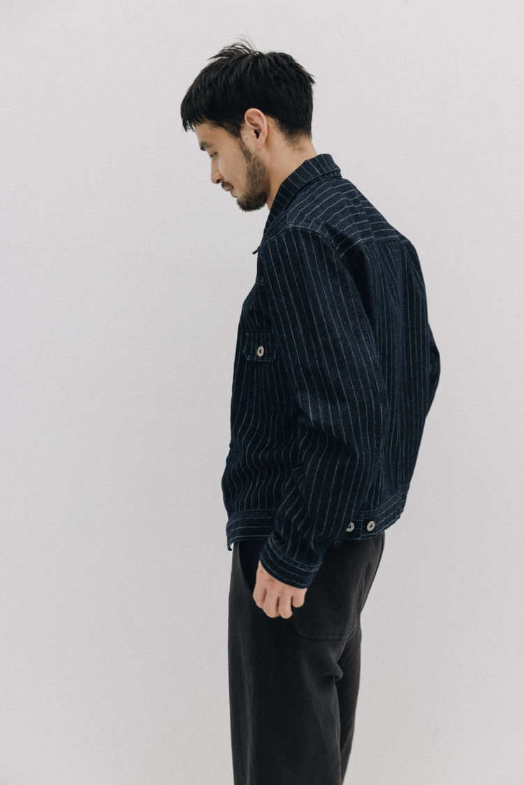 실용적인 작업복을 기반으로 한 데님 Type-2 자켓을 스트라이프 데님으로 제작했습니다. 위사와 경사, 스트라이프 원사를 각각 다르게 직조해 볼륨감 있는 텍스처를 살렸으며, 워싱 후 자연건조를 통해 구겨진 듯한 자연스러운 질감을 완성했습니다. 1950년대 Levi’s 507XX 자켓에서 영감을 받아 현대적으로 재해석한 제품입니다.
