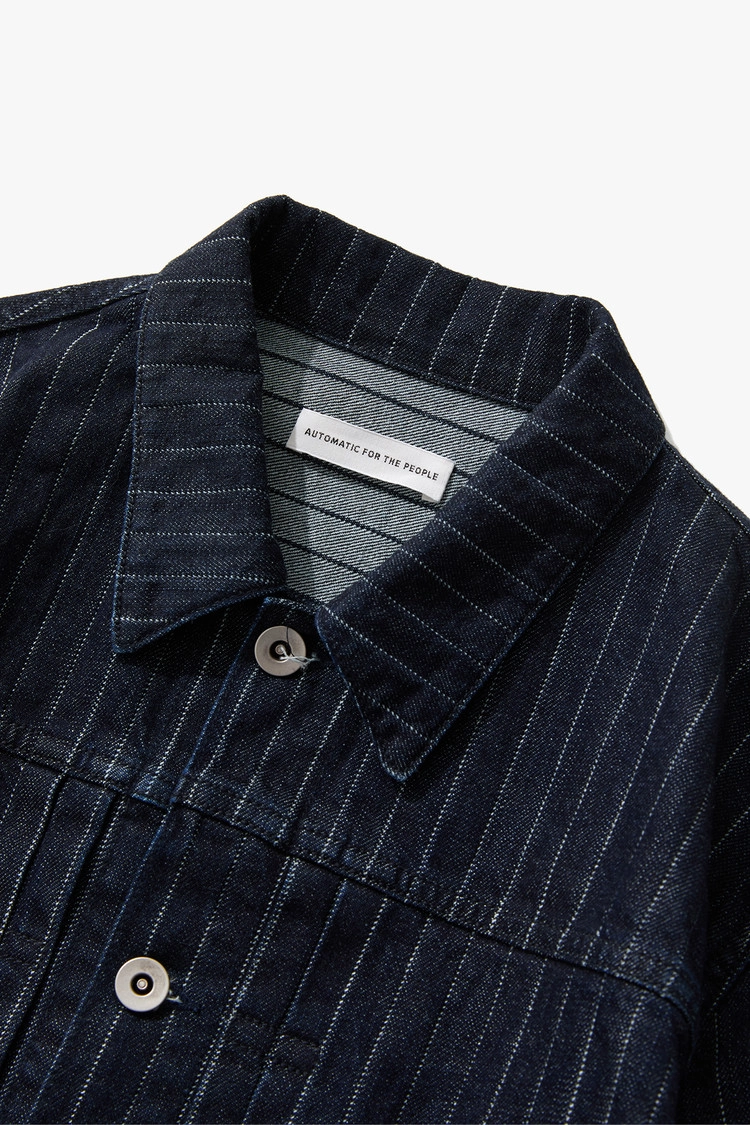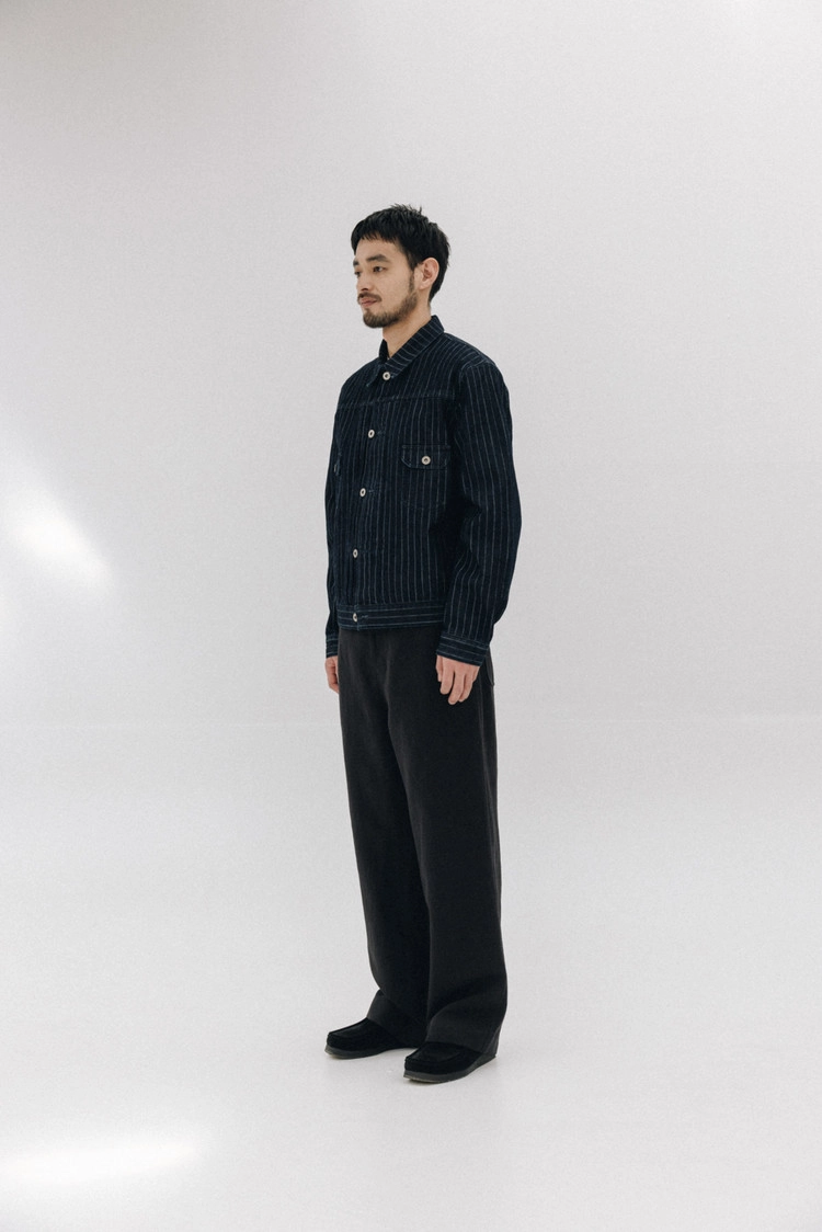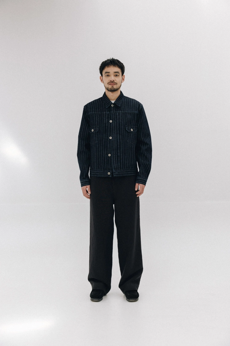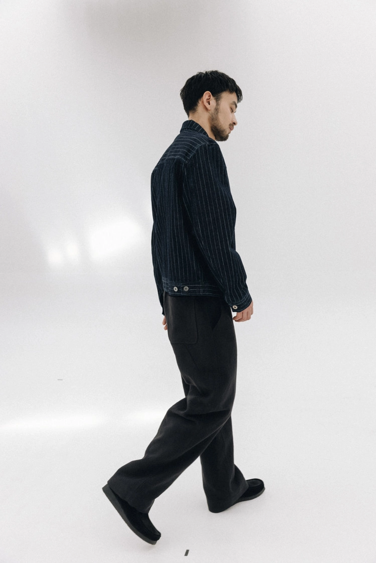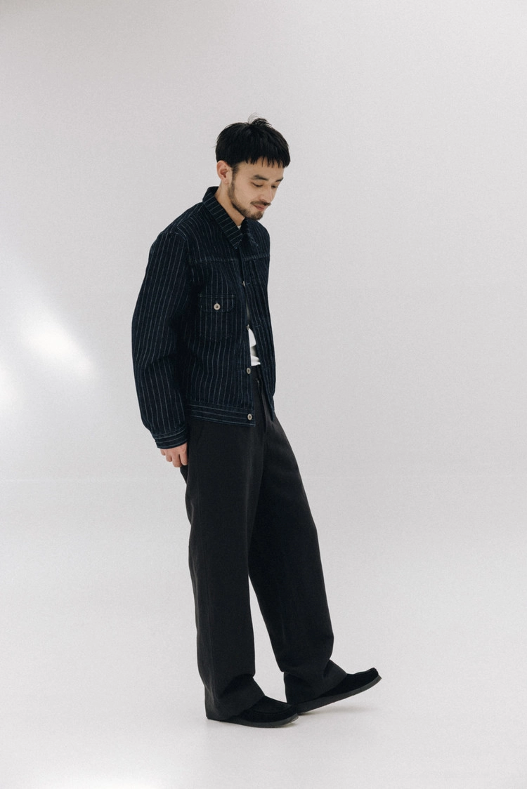 실용적인 작업복을 기반으로 한 데님 Type-2 자켓을 스트라이프 데님으로 제작했습니다. 위사와 경사, 스트라이프 원사를 각각 다르게 직조해 볼륨감 있는 텍스처를 살렸으며, 워싱 후 자연건조를 통해 구겨진 듯한 자연스러운 질감을 완성했습니다. 1950년대 Levi’s 507XX 자켓에서 영감을 받아 현대적으로 재해석한 제품입니다.