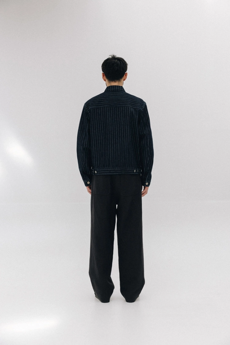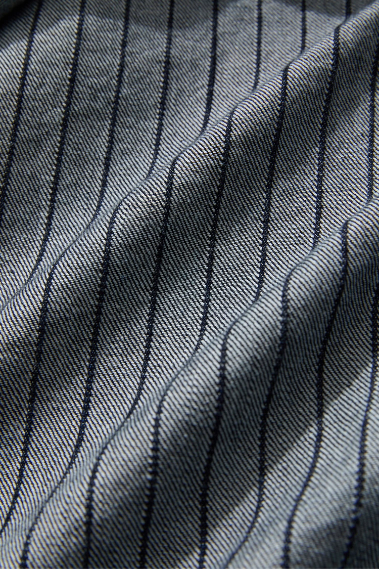 위사와 경사에는 인디고 원사를, 스트라이프 원사에는 다른 타입의 코튼을 사용해 밀도와 볼륨감을 다르게 직조한 데님 원단입니다. 입체감과 워싱 후 내추럴한 질감이 특징입니다.