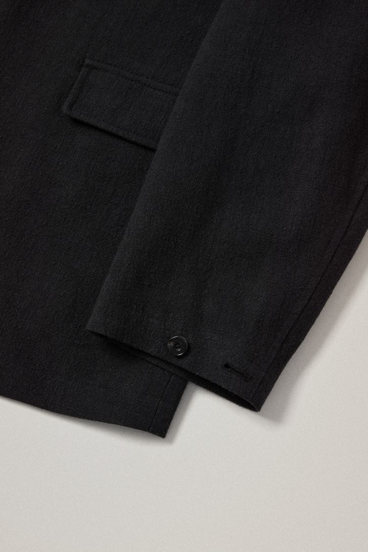 독특한 터치감과 표면감을 가진 투 버튼 너치드 자켓입니다. 심지를 거의 사용하지 않고 형태를 살리는 구조로 패턴을 만들고 최고급 큐프라 안감으로 마무리하였습니다. 내추럴한 느낌을 표현하기 위해 최선을 다한 제품입니다.