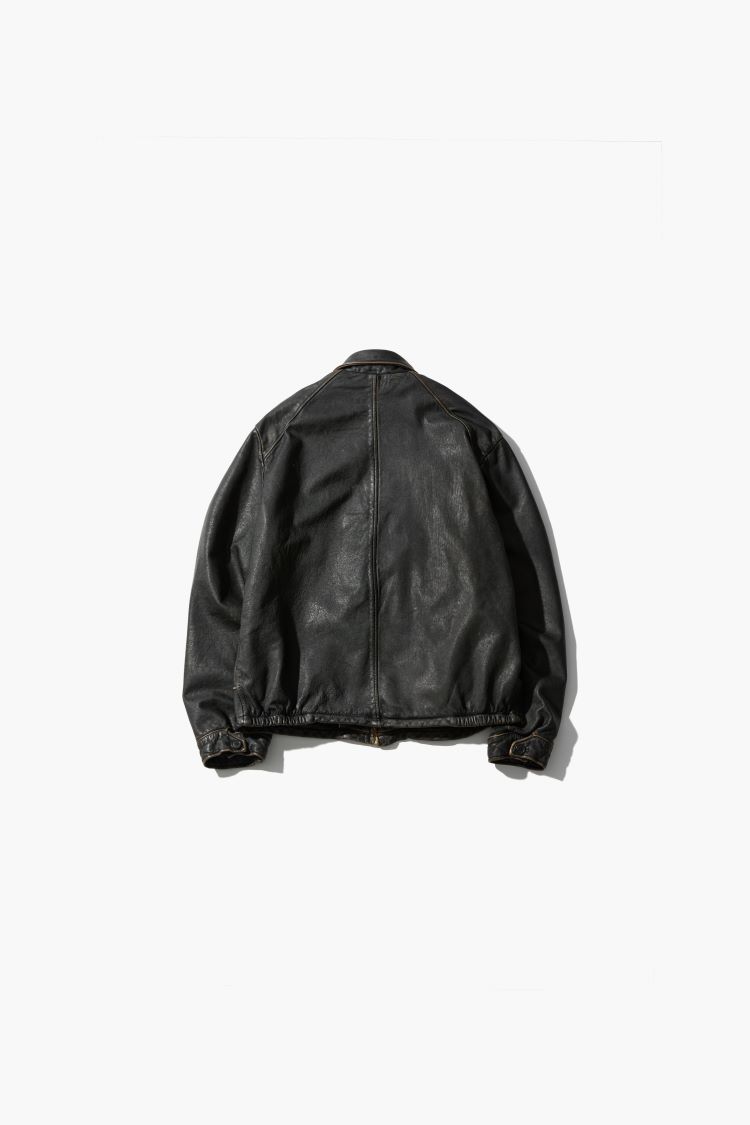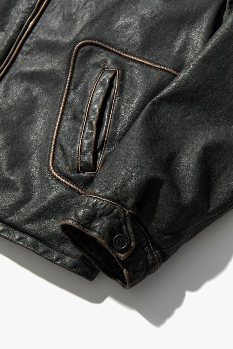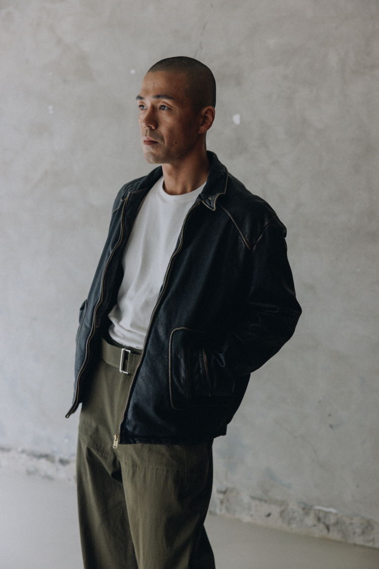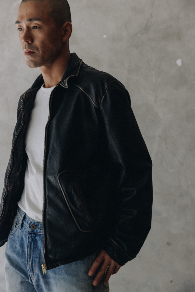 최상급 송아지 가죽을 일본에서 머드 다잉으로 염색한 후, 빈티지 워싱을 추가하여 내구성과 세밀한 빈티지 디테일을 강조한 제품으로 포켓을 감싸는 파이핑 디테일과 독특한 형태의 카라가 특징입니다. 1950년대 미국 국토부가 전기원을 위해 보급한 자켓을 현대적인 감각으로 재해석한 디자인으로, 클래식한 매력과 독창성이 돋보입니다.