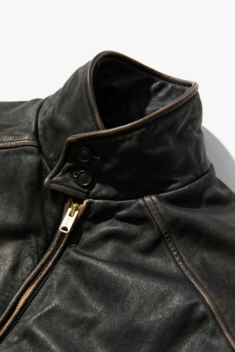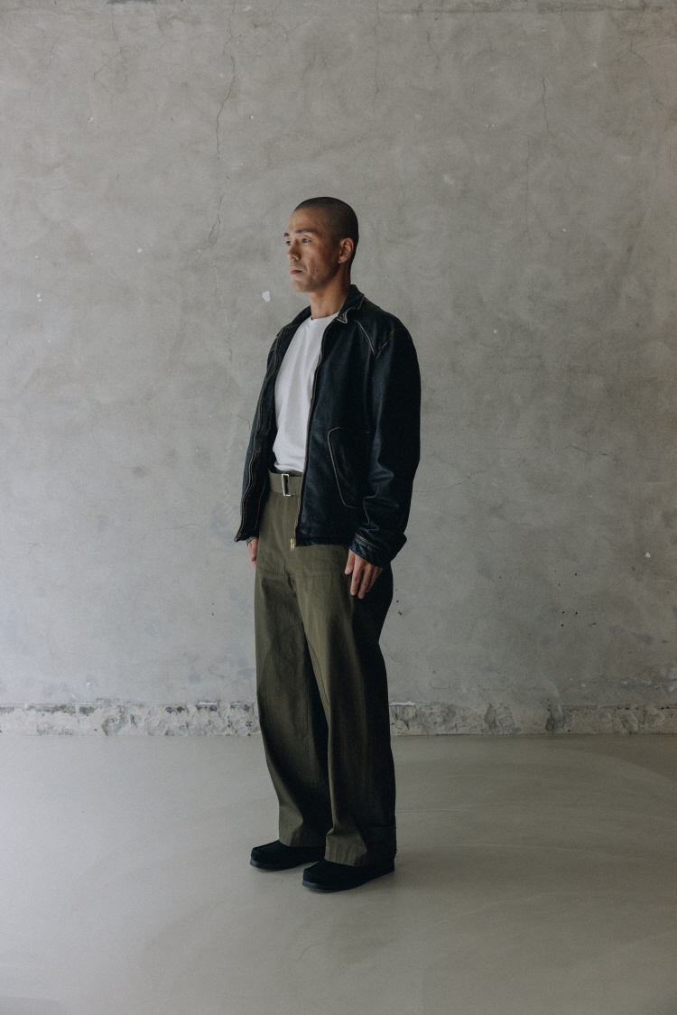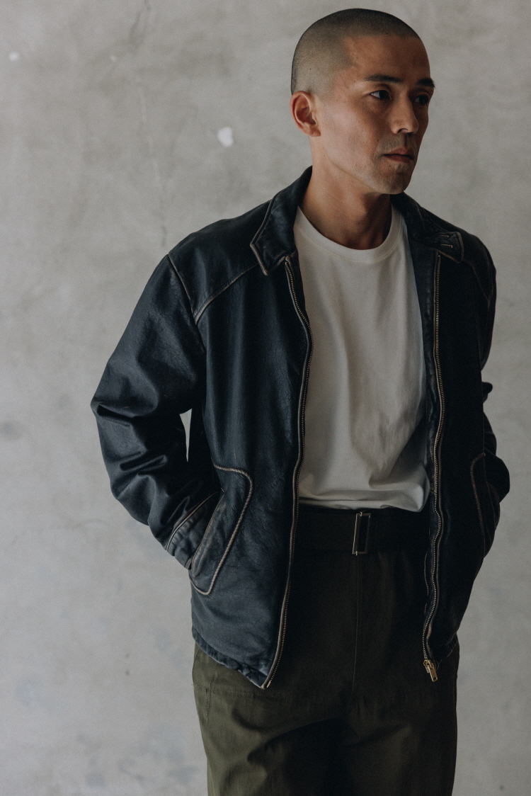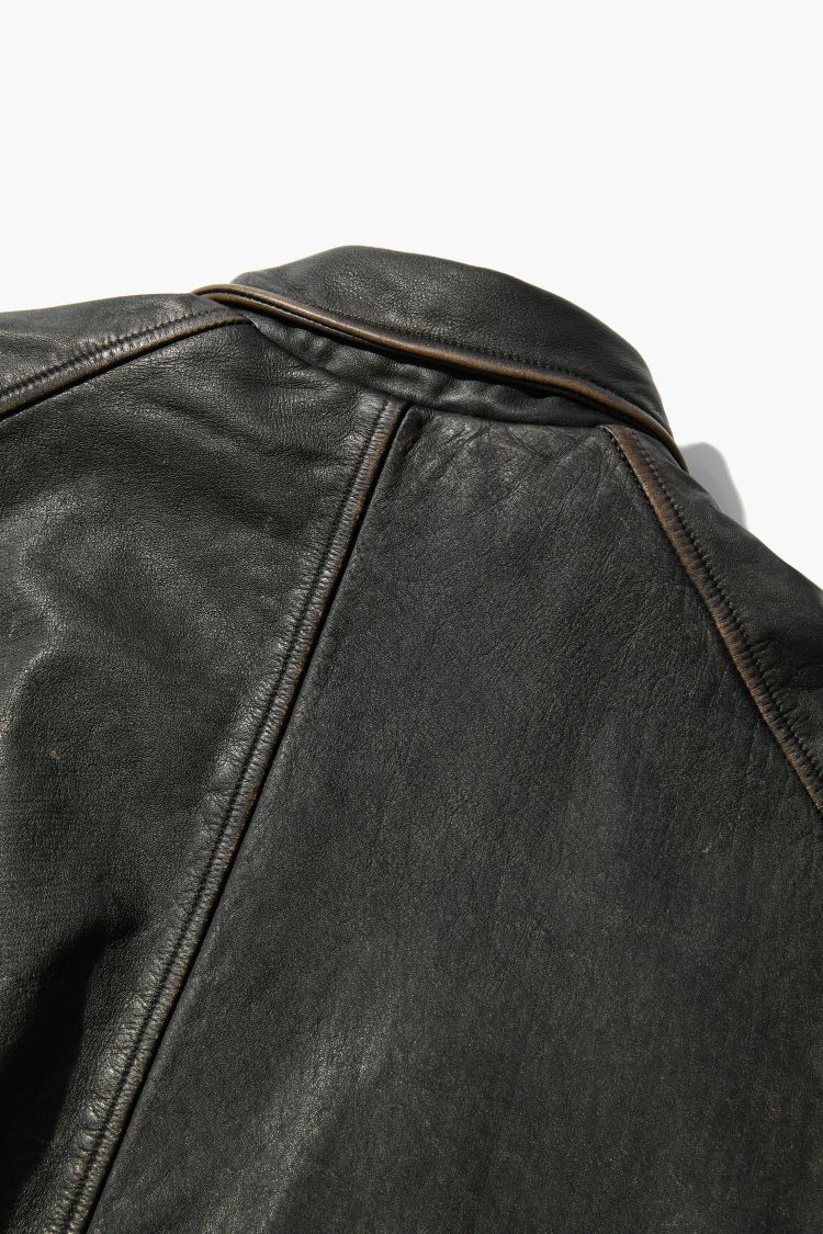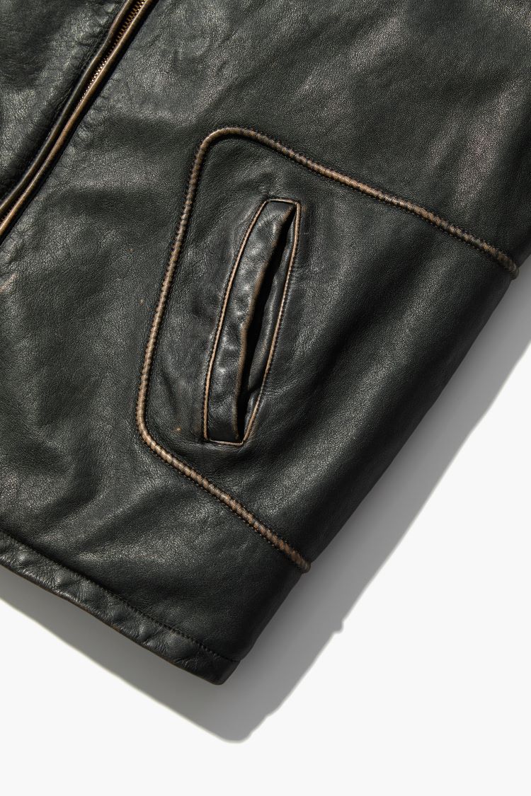 최상급 송아지 가죽을 일본에서 머드 다잉으로 염색한 후, 빈티지 워싱을 추가하여 내구성과 세밀한 빈티지 디테일을 강조한 제품으로 포켓을 감싸는 파이핑 디테일과 독특한 형태의 카라가 특징입니다. 1950년대 미국 국토부가 전기원을 위해 보급한 자켓을 현대적인 감각으로 재해석한 디자인으로, 클래식한 매력과 독창성이 돋보입니다.